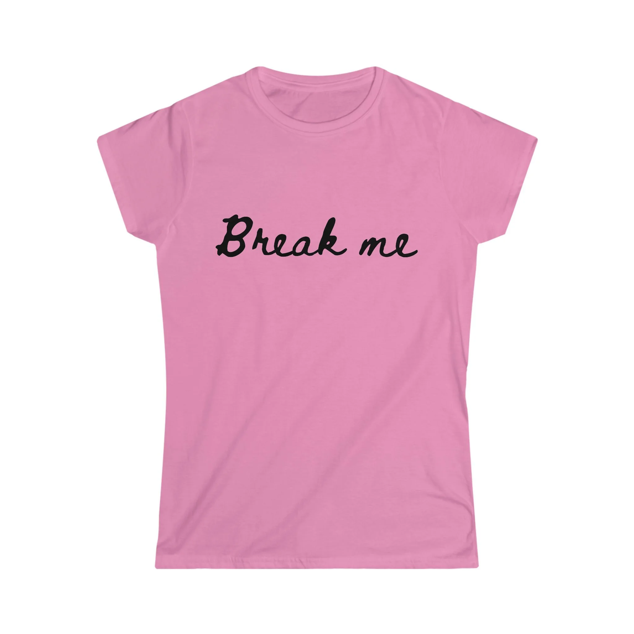 Cute Women's “break me” BDSM/DDLG/ABDL "softstyle" tee. Cursive font with black Lettering. An adorable gift for your little, middle, or kitten! The woman's softstyle tee is a more feminine take on the classic tee. The sleeves are shortened to reveal some shoulder.. The fabric is 100% ringspun cotton for all solid colors. The shoulders are taped with twill to prolong durability. The collar seam is reinforced with ribbed knitting. ABDL/DDLG/BDSM Submissive tee features: .: 100% ringspun cotton (fiber content may vary for different colors) .: Light fabric (4.5 oz/yd² (153 g/m²)) .: Semi-fitted .: Tear-away label .: Runs true to size Available colors: Irish Green, Light Blue, Red, Royal Blue, Sport Grey, White and Azalea (pink)